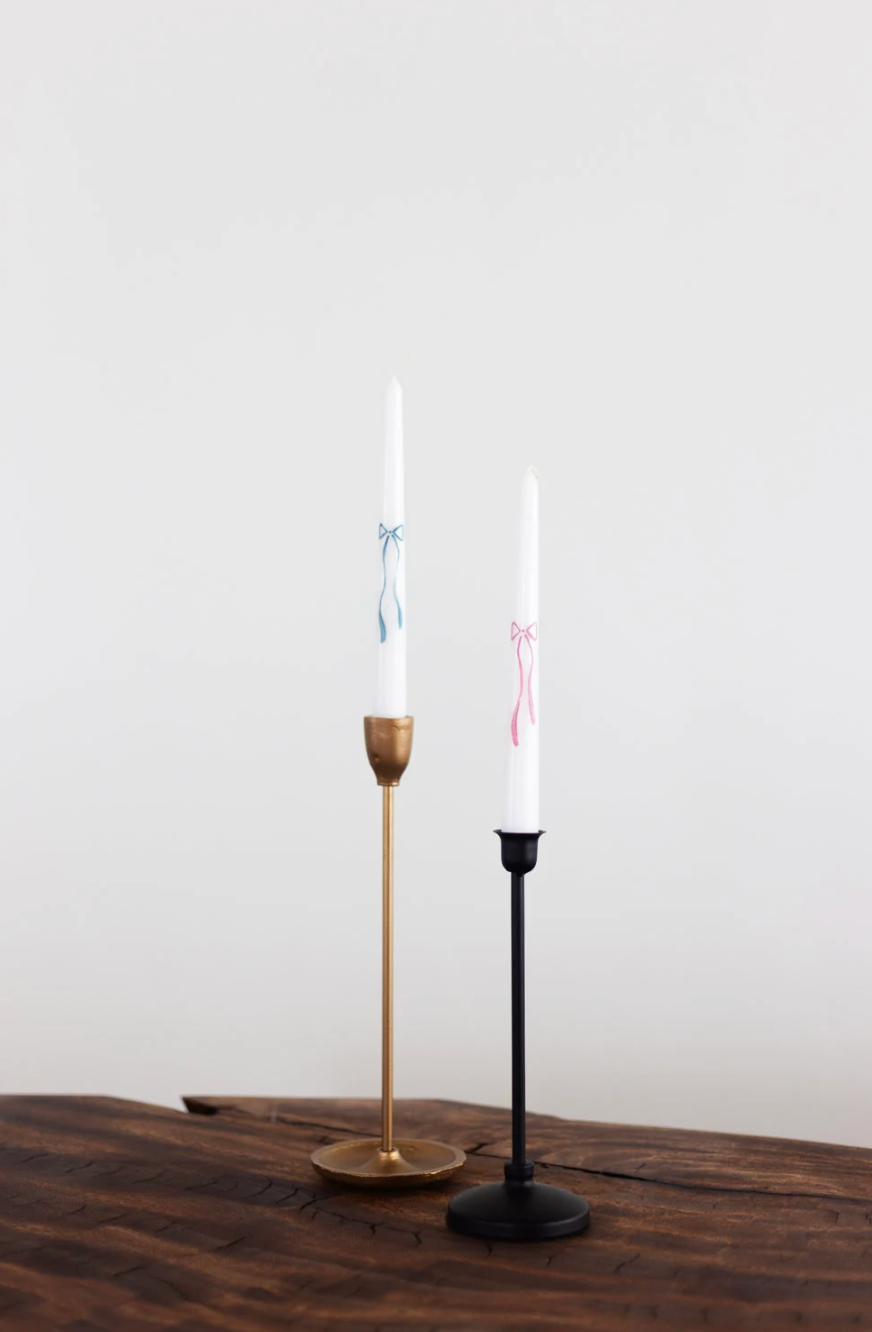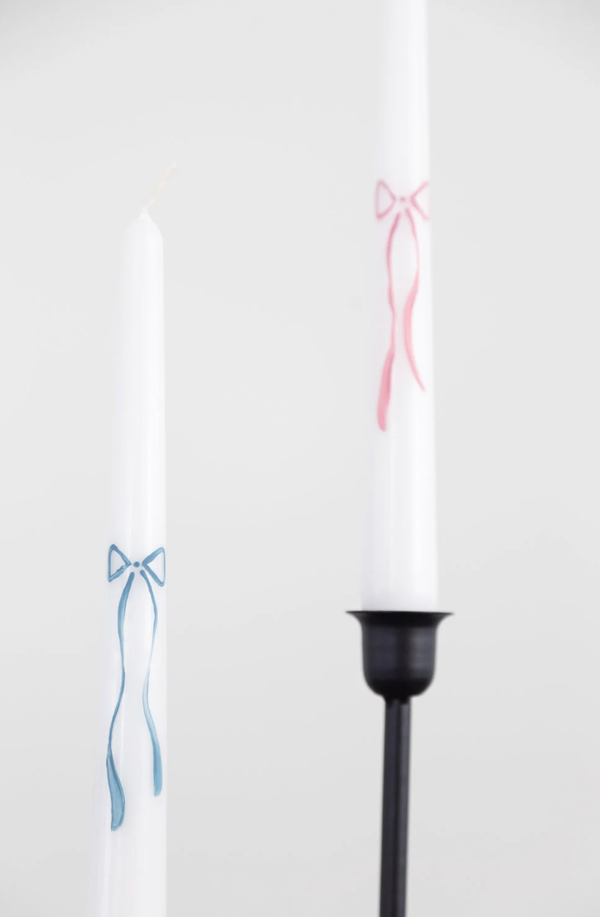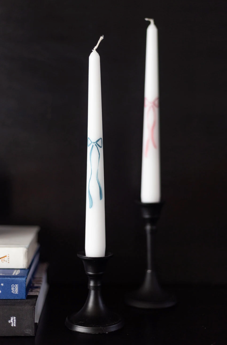 Two statement bows painted on every candle. Truly gorgeous, and the perfect decoration for any event including every day!