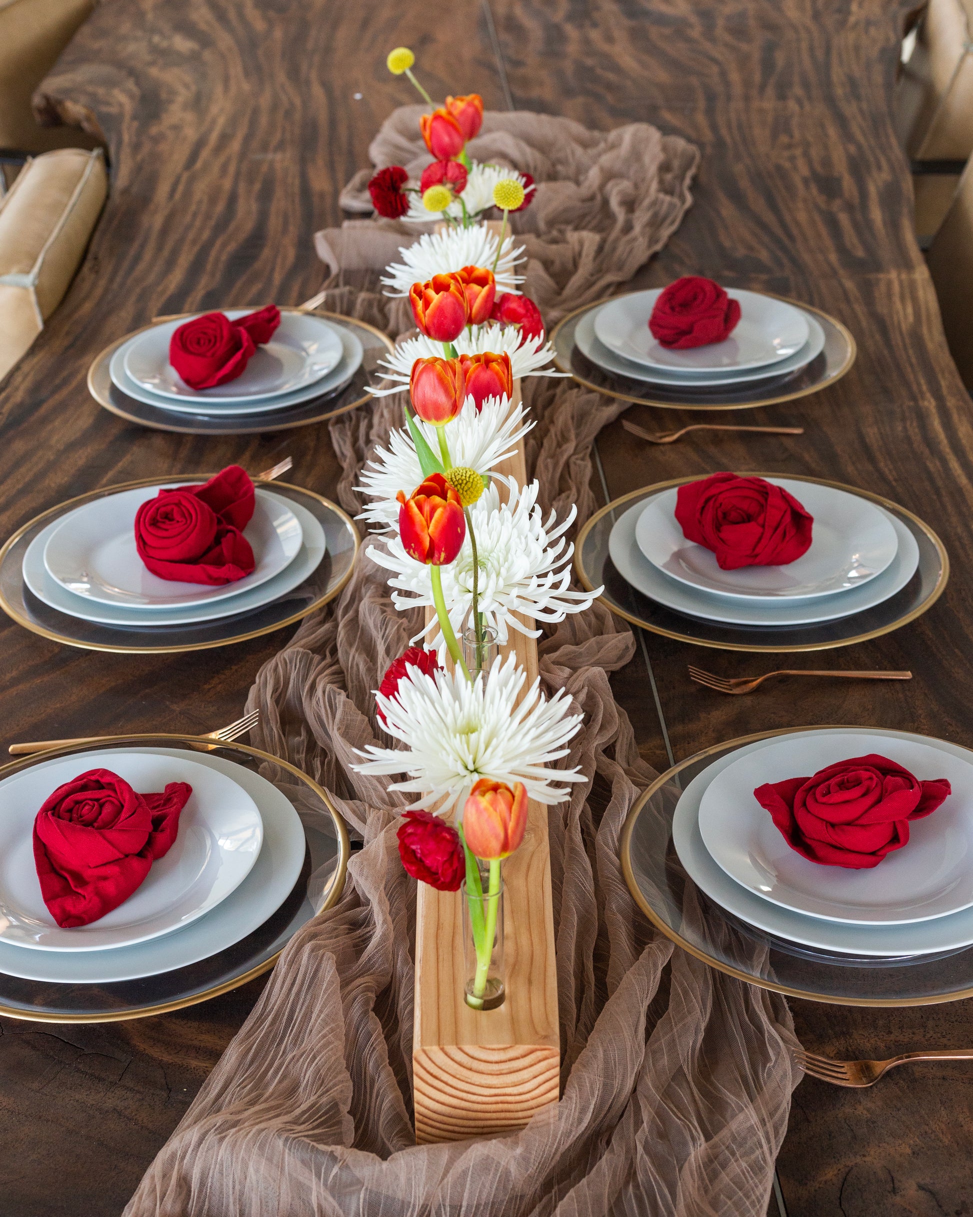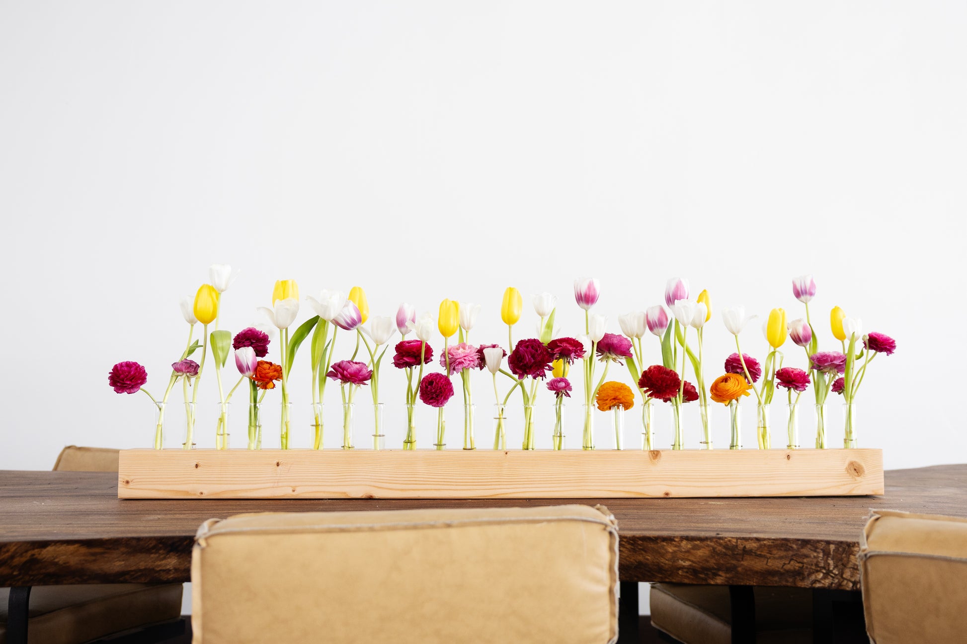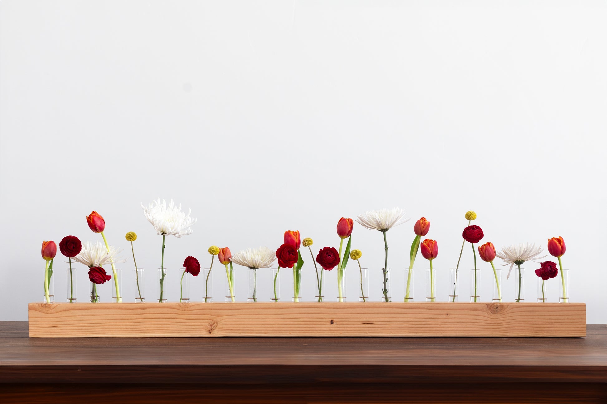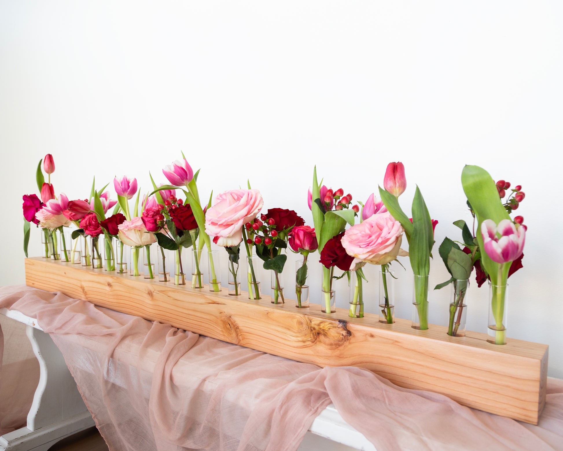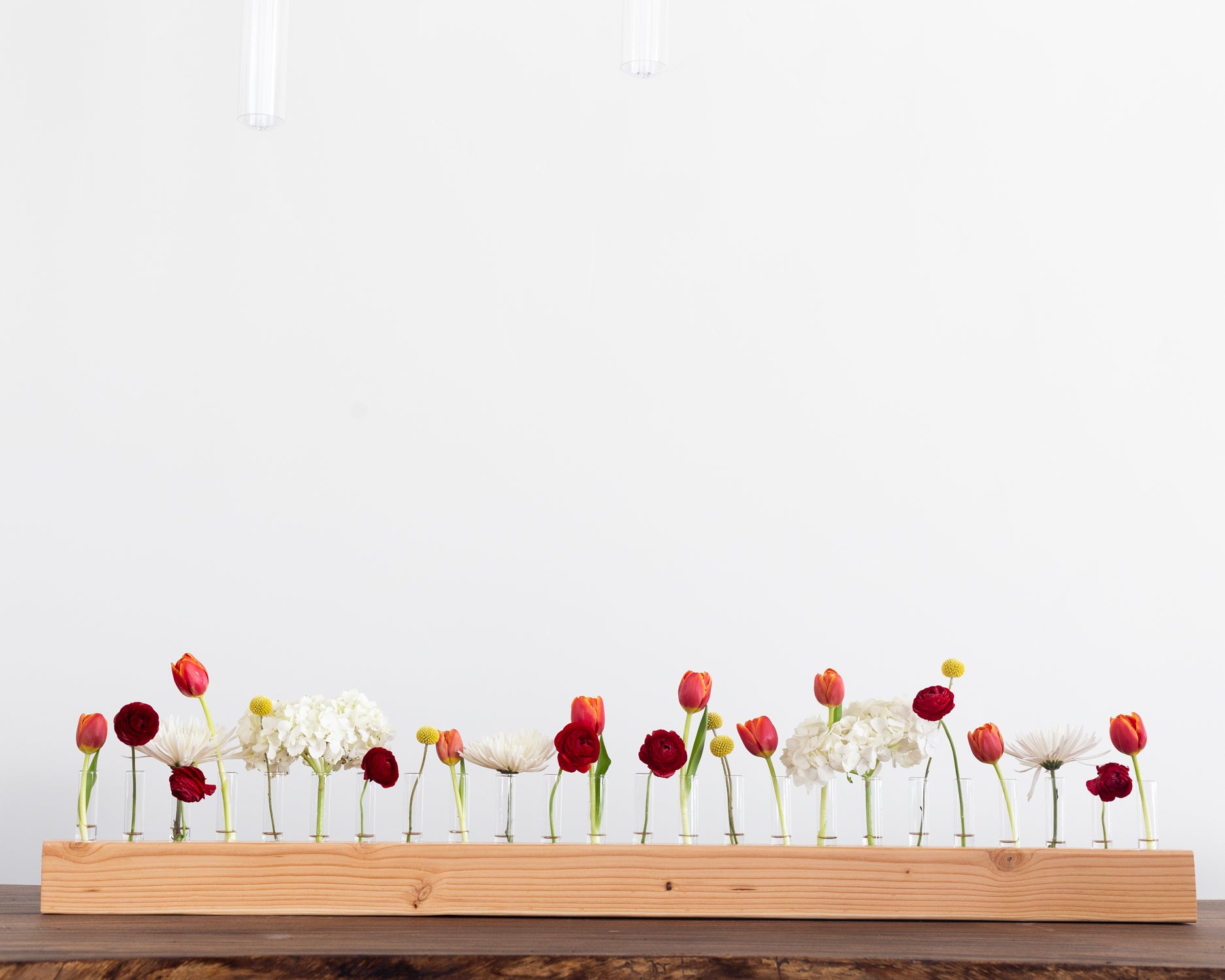 Centerpiece Dimensions - Vials are 4.5 install, 6 inches tall (w/ glass), 50 inches long, 3.5 inches wide