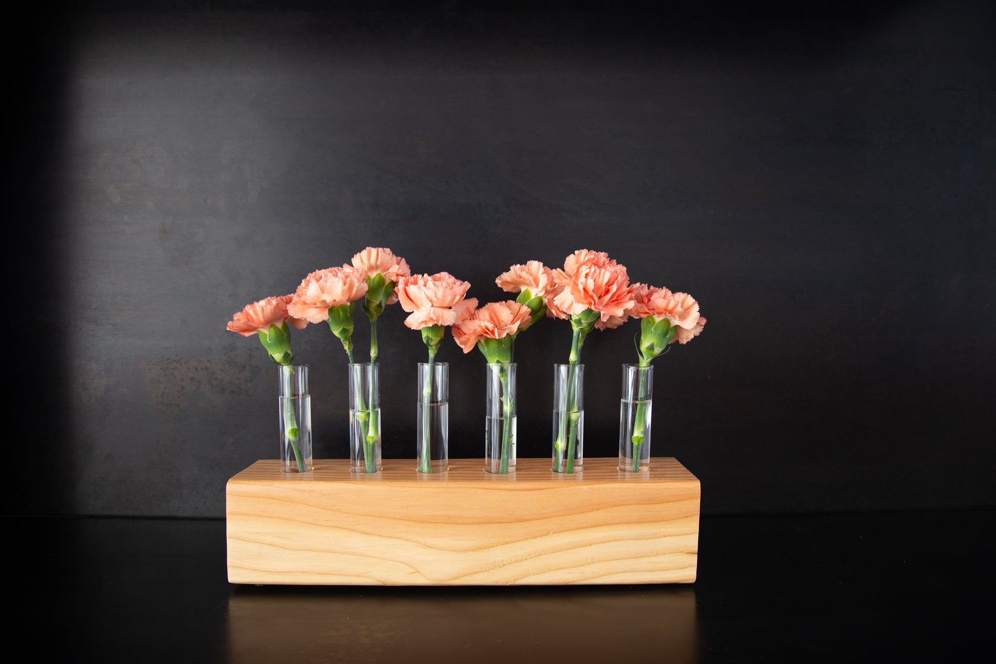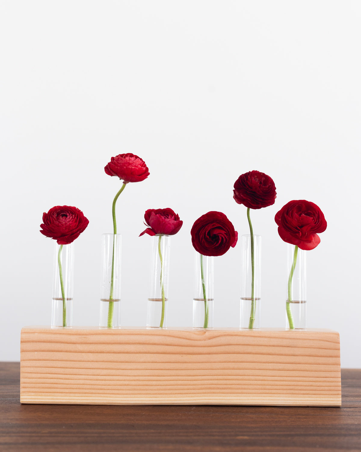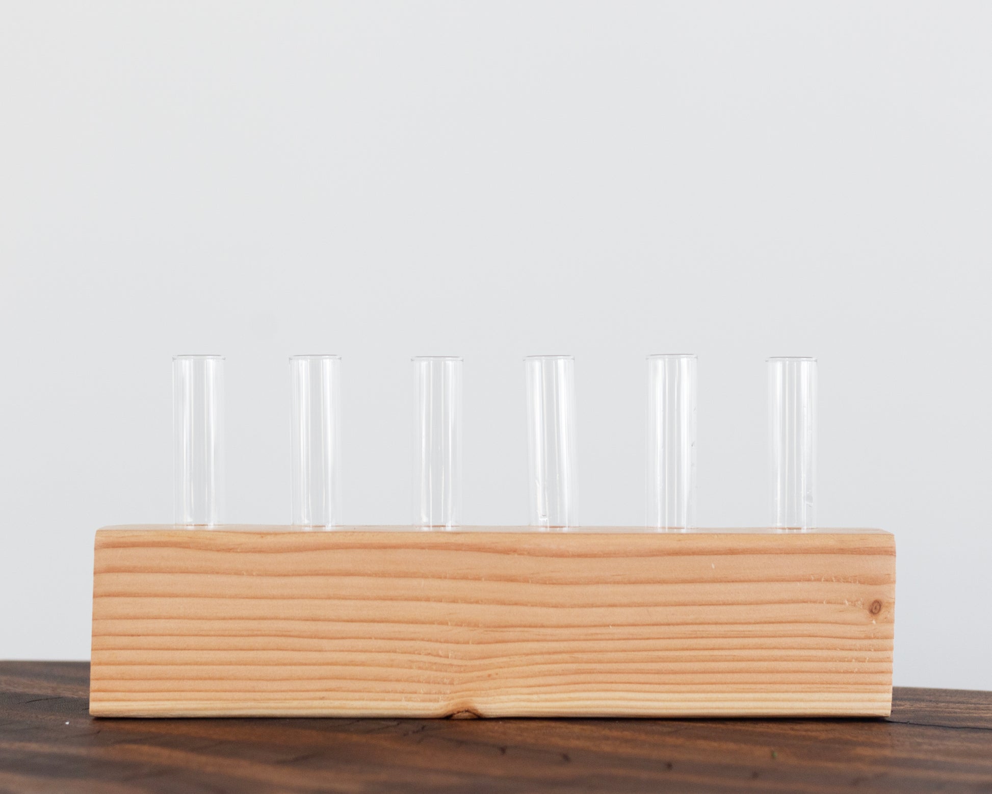 Our smallest centerpiece is 6 stems. It is perfect for small tables, nightstands, end tables, coffee tables, windowsills, and more. Glass and wood included.