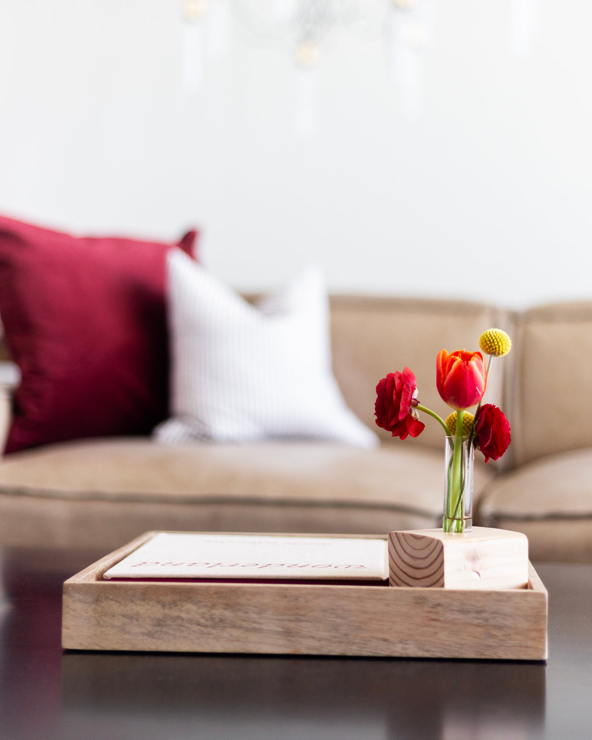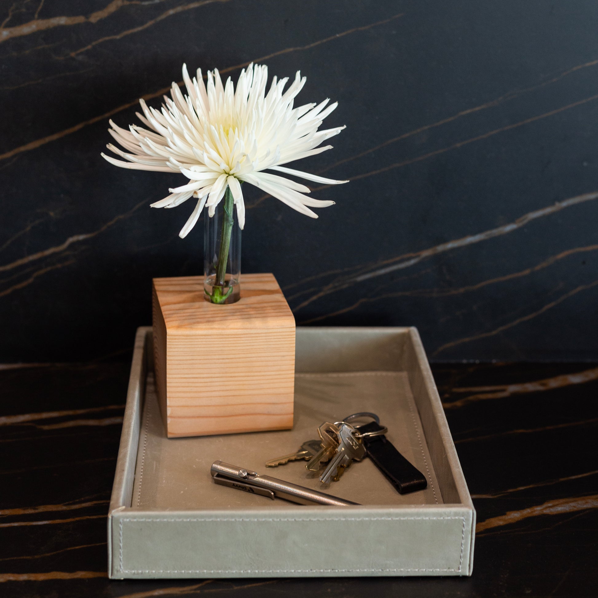 The smallest centerpiece is one stem. Sweet and simple, the single is the perfect accent piece to any design area. Perfect for bookends, scattered around serving tables, nightstands, and more. Glass and wood included.